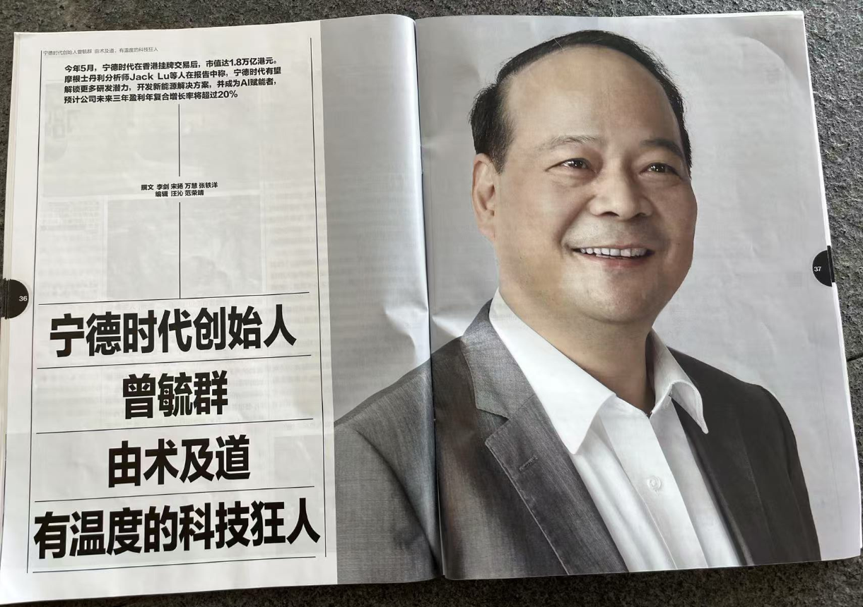 彭博《商业周刊》2025年第11期杂志,今年5月,宁德时代在香港挂牌交易后,市值达1.8万亿港元。摩根士丹利分析师Jack Lu等人在报告中称,宁德时代有望解锁更多研发潜力,开发新能源解决方案,并成为AI赋能者,预计公司未来三年盈利年复合增长率将超过20%。